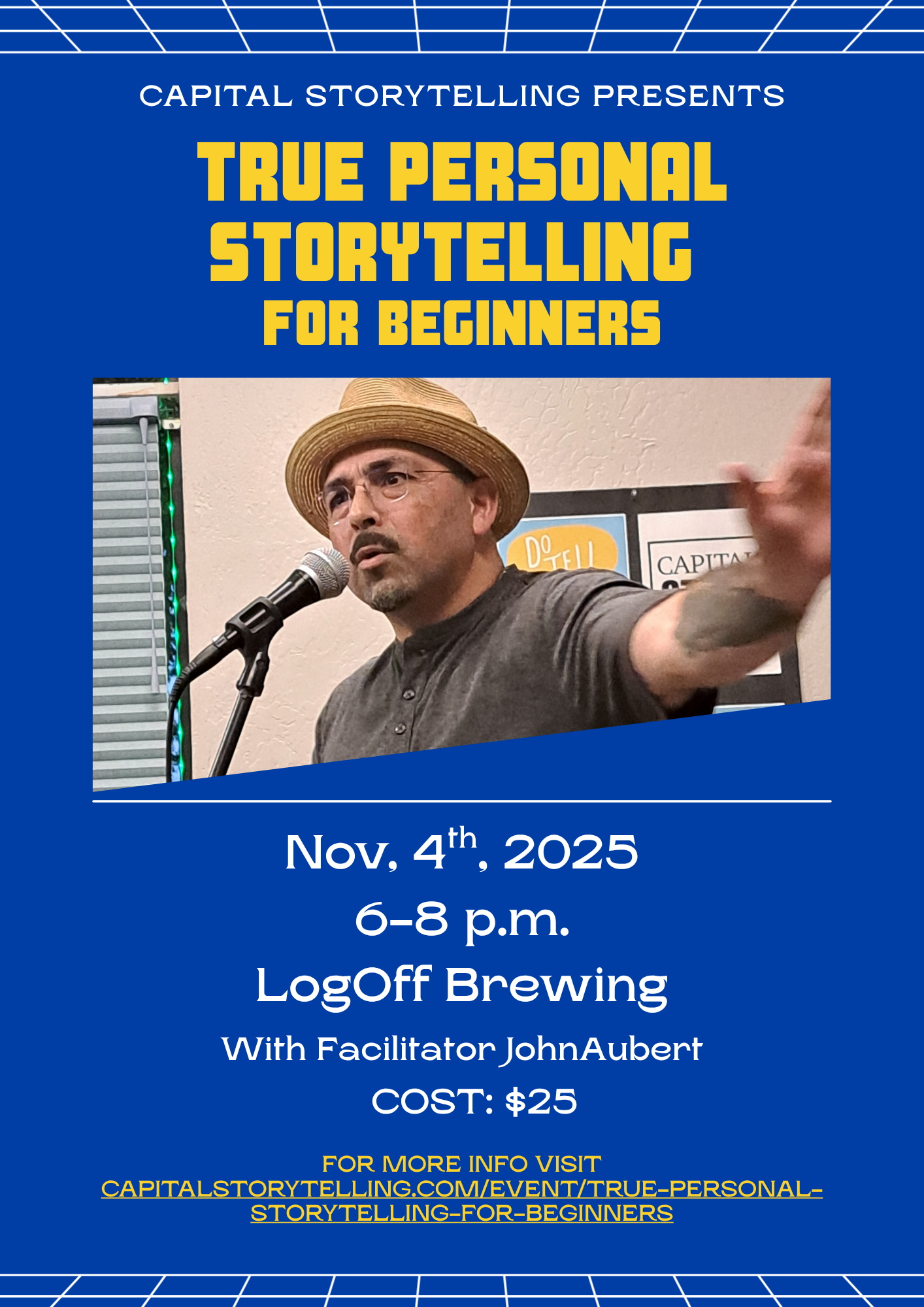 In addition to teaching geography at American River College for 25 years, John has taken the stage at fifteen Moth Story Slams (winning twice!) and has also been a featured storyteller on live stages across Northern California and on several popular storytelling podcasts. In 2022, he completed Capital Storytelling’s Story Ambassador program, and he is now an assistant events producer, as well as a storytelling instructor and coach.
